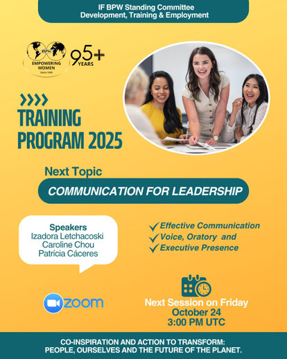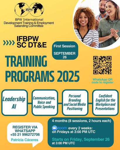 The BPW International Standing Committee for Development, Training and Employment invites BPW members from all continents to join our Training Program 2025.